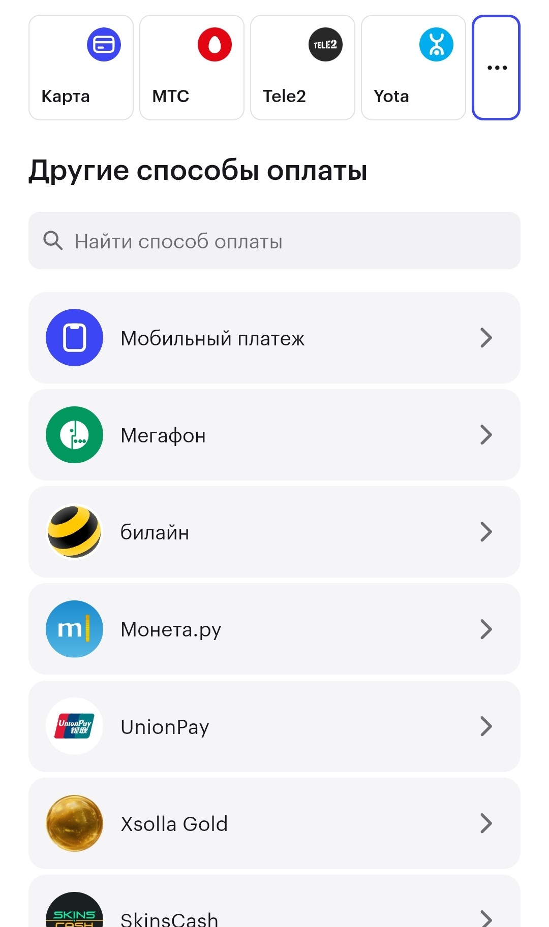 6. Выберите способ оплаты.